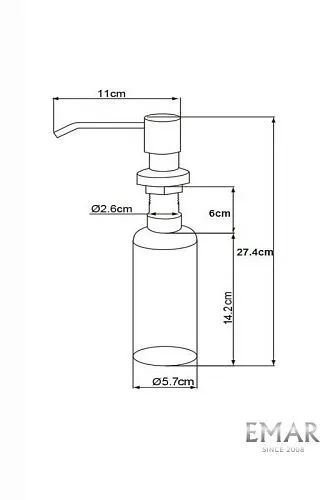 Функциональный и простой в использовании аксессуар для Вашей кухни. Подходит для использования жидкого мыла или моющего средства. Дозатор EMAR ЕД-401 легко устанавливается на кухонную мойку или в столешницу. Вместительная емкость легко заполняется средством сверху.