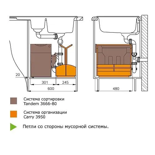 Выдвижная платформа с 2 съемными емкостями в распашной шкаф CARRY Hailo (арт. 3950-00)