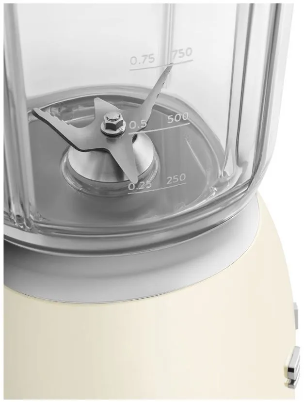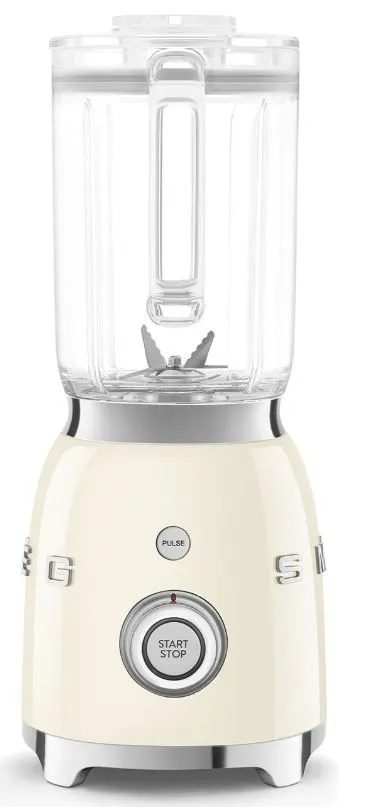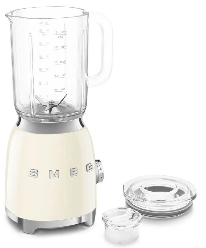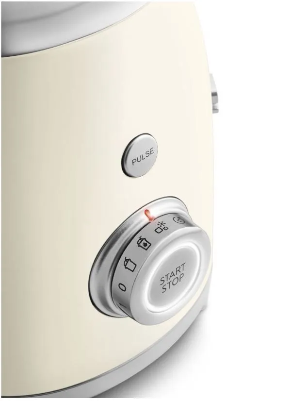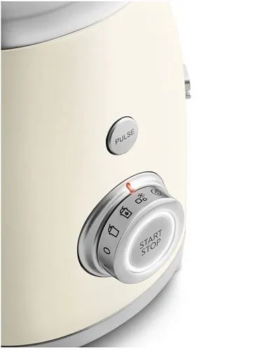Блендер Smeg BLF03CREU имеет 4 предустановленные программы и 4 режима работы среди них , есть импульсный. Управление осуществляет с помощью поворотного регулятора, на нем отображаются все функции. Благодаря противоскользящим ножкам, устройство будет устойчиво стоять на столе.