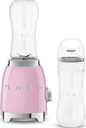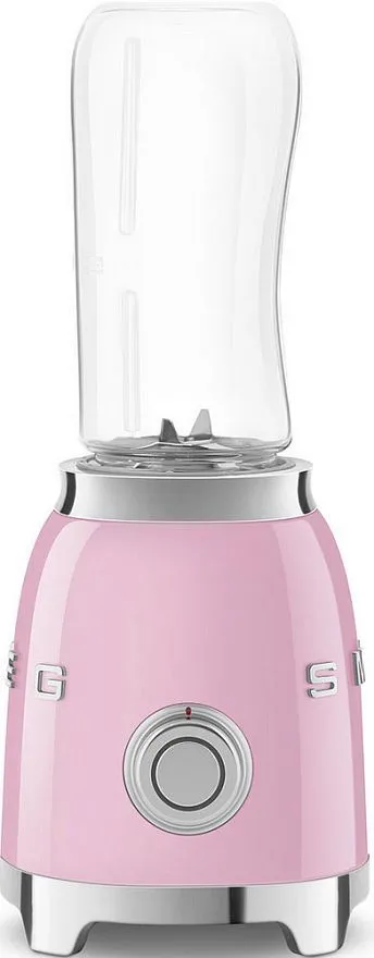 Блендер PBF01PKEU представлен в стиле 50-х годов и выполнен в розовом цвете. Прибор имеет 2 контейнера объемом 600 мл с защитной крышкой и крышкой-колпаком. Корпус прибора и лезвия выполнены из нержавеющей стали, что обеспечит долговечность эксплуатации. Устройство заблокирует вращение если будет поднята смесительная головка.
