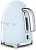 Электрический чайник Smeg KLF03PBEU — это нежная и воздушная модель, выполненная в стилистике 50-х годов. Он имеет форму, характерную для того времени, и округлую фурнитуру. Особый шарм ему придает пастельный голубой цвет, который идеально сочетается с другими приборами этой серии. Чайник рассчитан на 1,7 л, при этом он выглядит компактно и изящно.