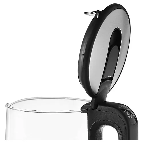 Механическое управление делает использование удобным и простым. Световая индикация работы помогает контролировать процесс нагрева воды. Дизайн выполнен в классическом белом цвете, что позволяет ему гармонично вписаться в любой интерьер. Корпус изготовлен из закаленного стекла, что придает ему элегантный и современный вид. Особенностью данной модели является вращение на подставке на 360°, что обеспечивает удобство использования. Фильтр от накипи помогает поддерживать чистоту воды, а мерная шкала позволяет контролировать ее количество. Автоматическое поддержание заданной температуры воды обеспечивает комфортное использование. В случае недостаточного количества воды, при закипании или при снятии с подставки чайник автоматически отключается.