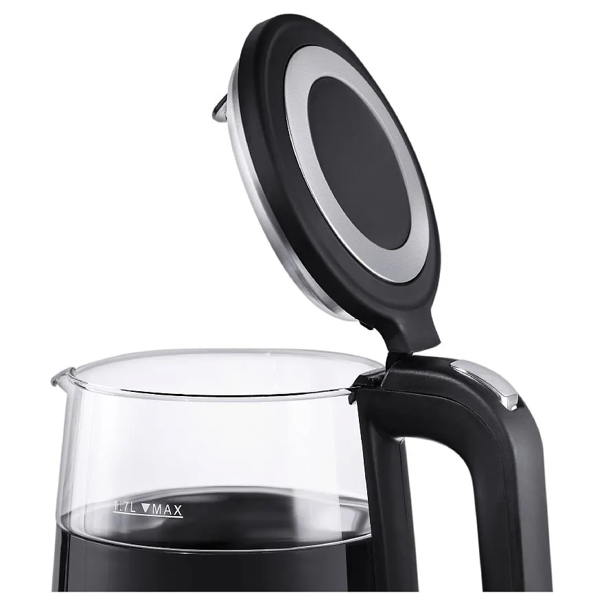 Стеклянный чайник Korting KWK 0907 G — это идеальное сочетание функциональности, технологичности и стильного дизайна. С первого взгляда притягивает внимание его элегантный черный цвет и прозрачность стеклянного корпуса, которые вместе создают современный и стильный образ. Это устройство, которое станет настоящим украшением любой кухни, идеально вписываясь в любой интерьер. Особенностью этой модели является ее объем в 1.7 литра, что позволяет приготовить большое количество горячего напитка за один раз. Это особенно удобно, если в доме много любителей чая или кофе, или если вы часто принимаете гостей.