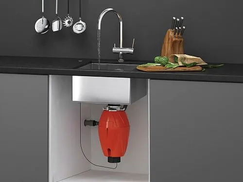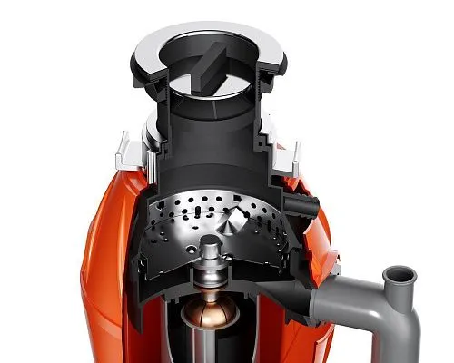 Благодаря легкому весу диспоузер можно установить на мойке любого типа (нержавеющая сталь или искусственный гранит). Измельчитель перемалывает отходы в мельчайшие частицы за несколько секунд без использования ножей и лезвий.
