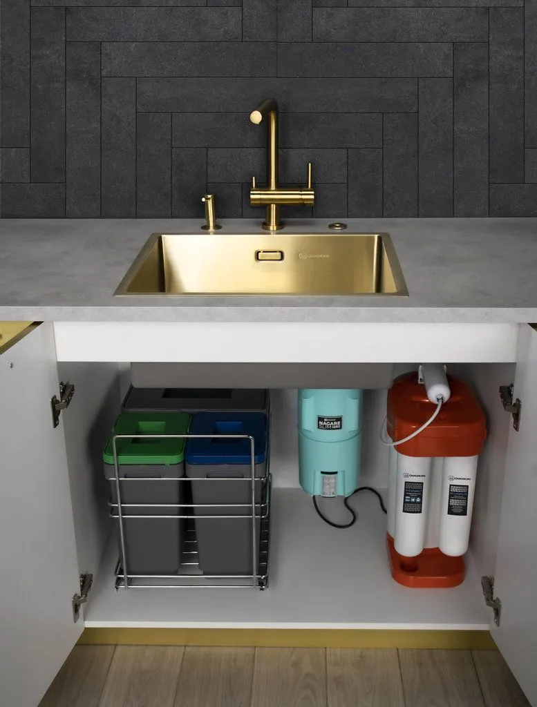 Главным преимуществом коллекции Nagare Slim является компактность корпуса, в связи с чем полезное пространство под мойку увеличится.