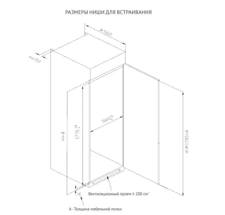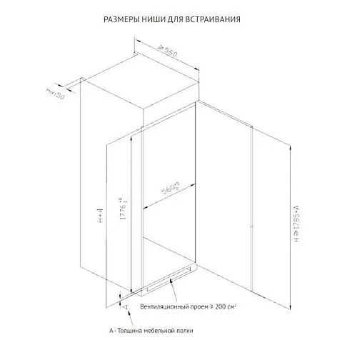 | Тип установки холодильника | встраиваемый | |
