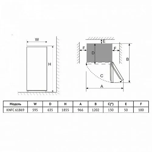 | Ширина шкафа для установки | 600 мм | |