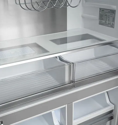 Охлаждение и заморозка происходят по системе No Frost, без образования инея, поэтому вам не нужно тратить время на размораживание. Современный инверторный компрессор работает эффективнее, тише и быстрее обычного, а технология LEX Volume Stream Air обеспечивает более равномерное охлаждение.