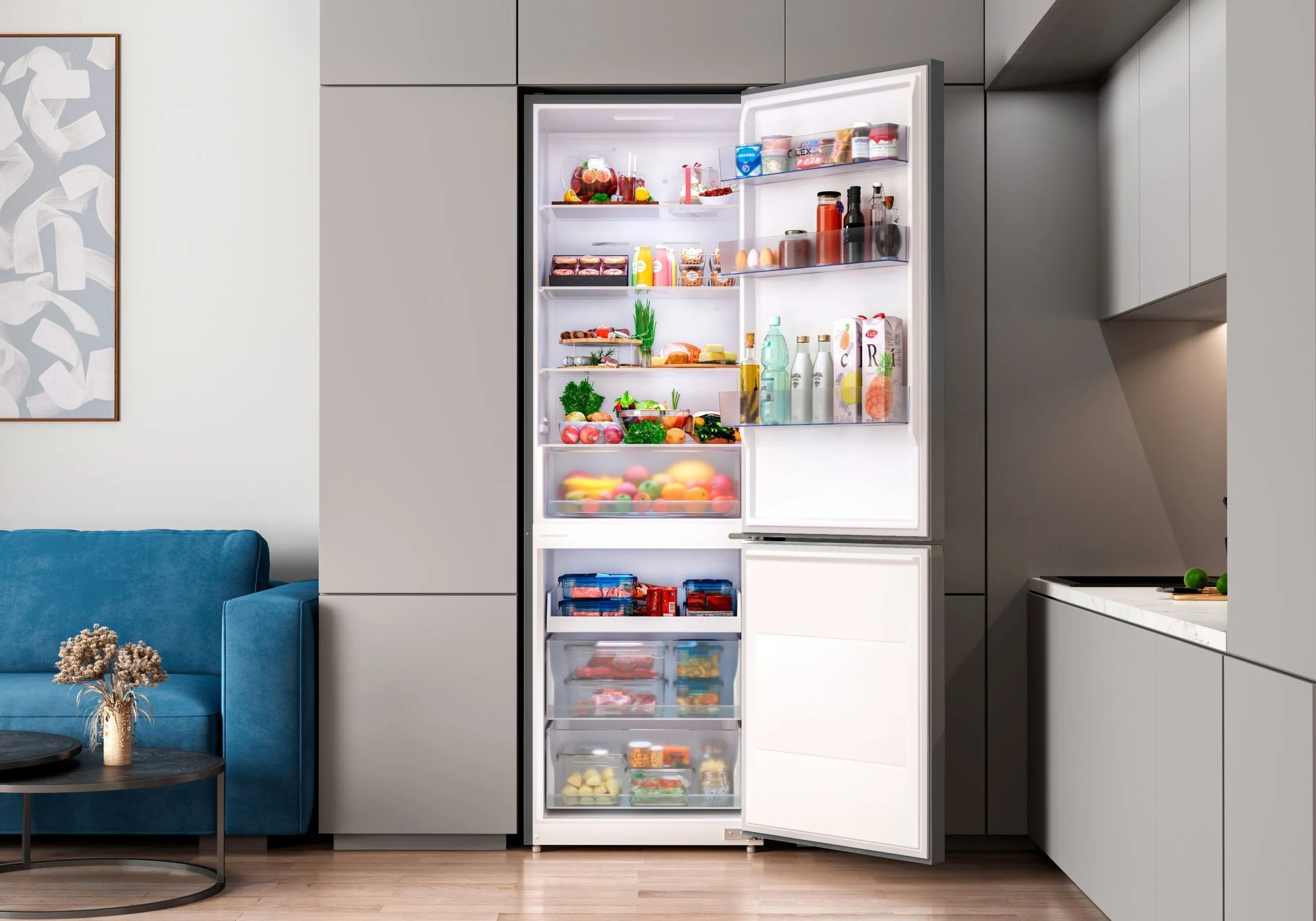 Два отделения с полезным объемом 409 литров дают возможность хранить все блюда и напитки на удобном уровне.