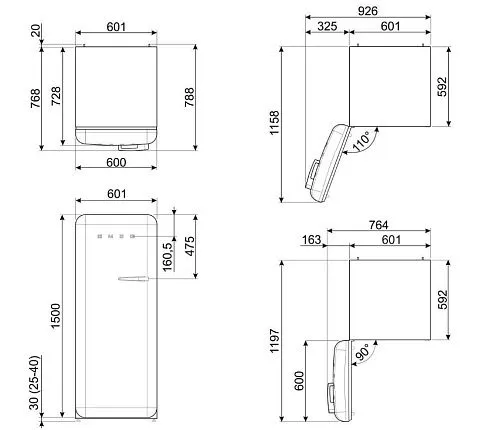 Расположенный сбоку термостат позволяет регулировать и контролировать внутреннюю температуру электронным или ручным способом.
