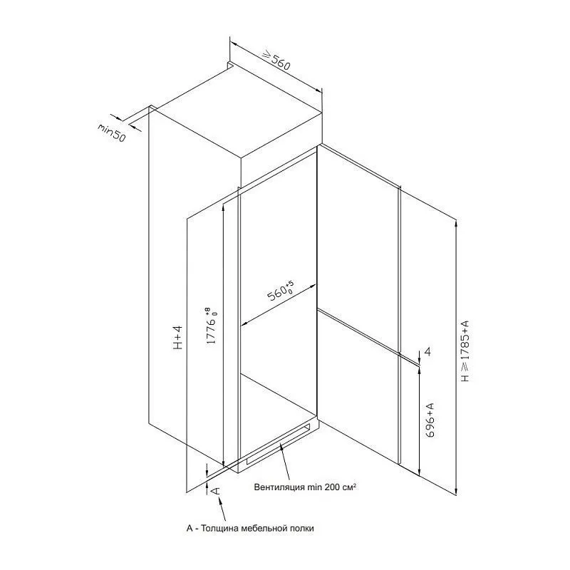 | Тип установки холодильника | встраиваемый | |