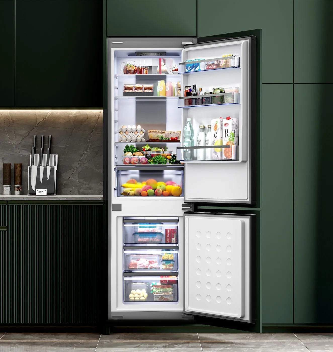 Двухкамерный холодильник LEX LBI177.3D имеет хороший функционал и в то же время очень прост в эксплуатации. Технология Total No Frost значительно упрощает обслуживание и помогает устанавливать оптимальную температуру и влажность. При большом объеме, мощной заморозке и яркой подсветке эта модель высотой 177 см обладает прекрасной энергоэффективностью и низким уровнем шума. Электронная панель управления удобна и долговечна, а режим сохранения температуры выручит при отключении электричества. Для вашего комфорта дверцу холодильника можно закрепить справа или слева; а функция “сигнал при открытой дверце” позаботится о том, чтобы она всегда была герметично закрыта. Модель оснащена ящиком, в котором можно отдельно настраивать уровень влажности, создавая идеальные условия для хранения разных видов овощей и фруктов.
