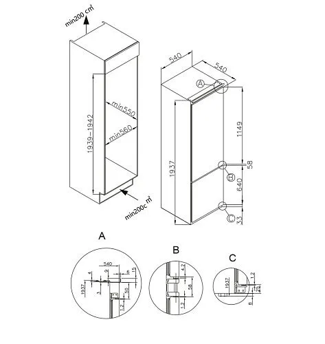 | Тип установки холодильника | встраиваемый | |