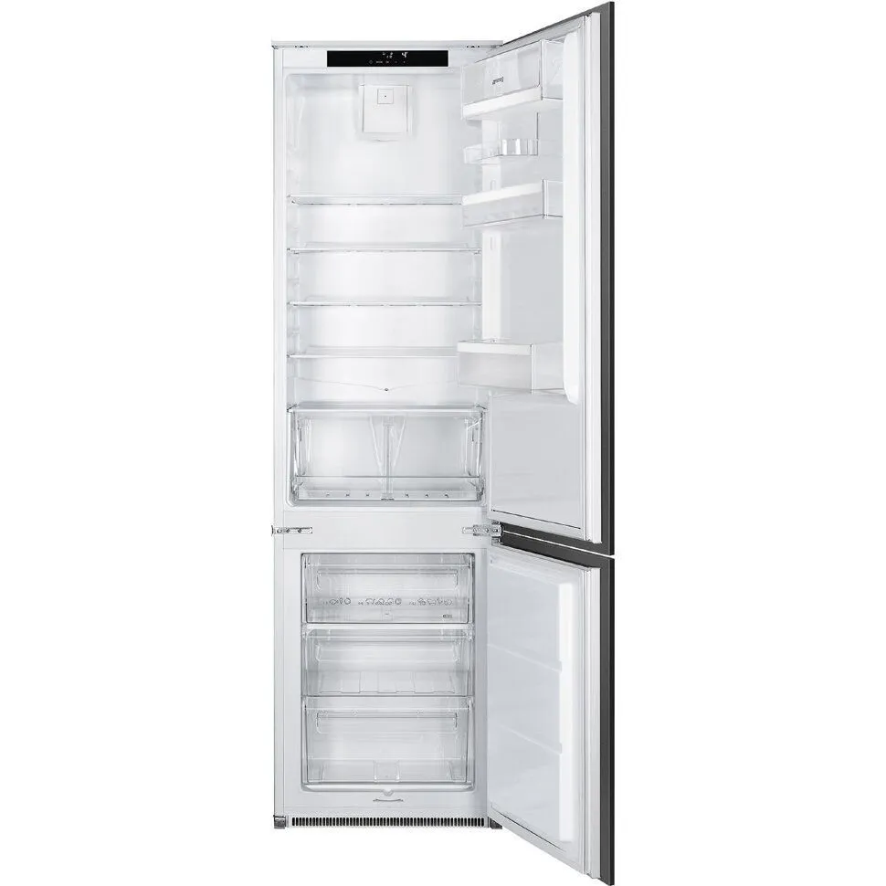 Холодильник SMEG C41941F1 оснащен автоматической системой размораживания в холодильном отделении и ручное в морозильном. Имеется функция отпуск, она позволяет отключать холодильное отделение и оставлять работающей только морозильную камеру. Светодиодное освещение равномерно распределяет свет по всей холодильной камере.
