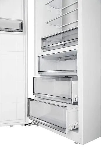 Прибор оснащен системой No Frost, которая предотвращает образование инея в морозильном отделении. Это значит, что вам не придется тратить время на его размораживание. Автоматическая система размораживания обеспечивает надежное и эффективное функционирование морозильника. Инверторный компрессор обеспечивает тихую и стабильную работу.