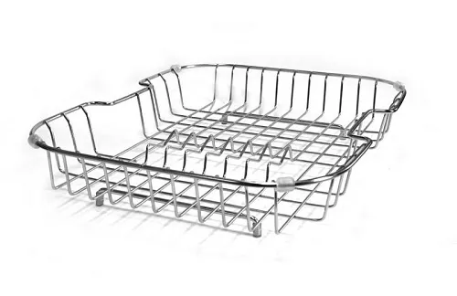 Функциональность кухонной сушки объяснять не нужно – размеры и крепления позволяют установить ее и в самой мойке, и сбоку на крыле. С корзиной поставляются специальные силиконовые ножки.