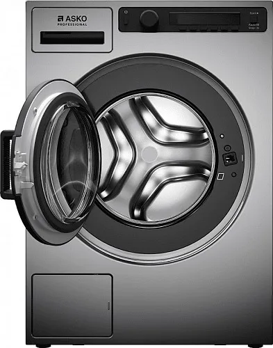Профессиональная стиральная машина Asko WMC6743PB.T выполнена в привлекательном титановом цвете. Такую технику используют малые предприятия вроде небольших морских судов, кофеен, салонов красоты и т.п. Она отличается высокой износостойкостью, а также вложенными в систему пакетами программ, обеспечивающих качественный результат и высокий показатель гигиены. Немаловажную роль играет конструкция дверцы SmartSeal. Она без резиновой манжеты, в которой обычно собираются грязь и бактерии. Кроме того, люк может открываться на 180 градусов, что делает процесс загрузки и выгрузки вещей комфортным.