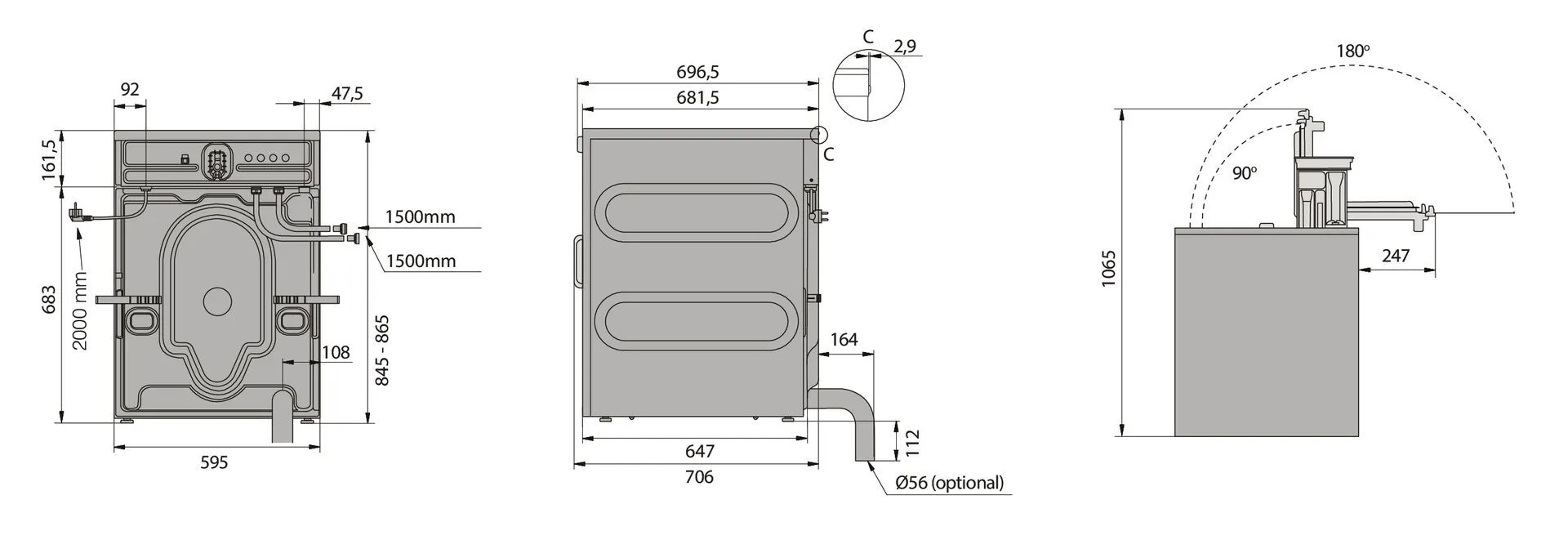 | Ширина шкафа для установки | 600 мм | |