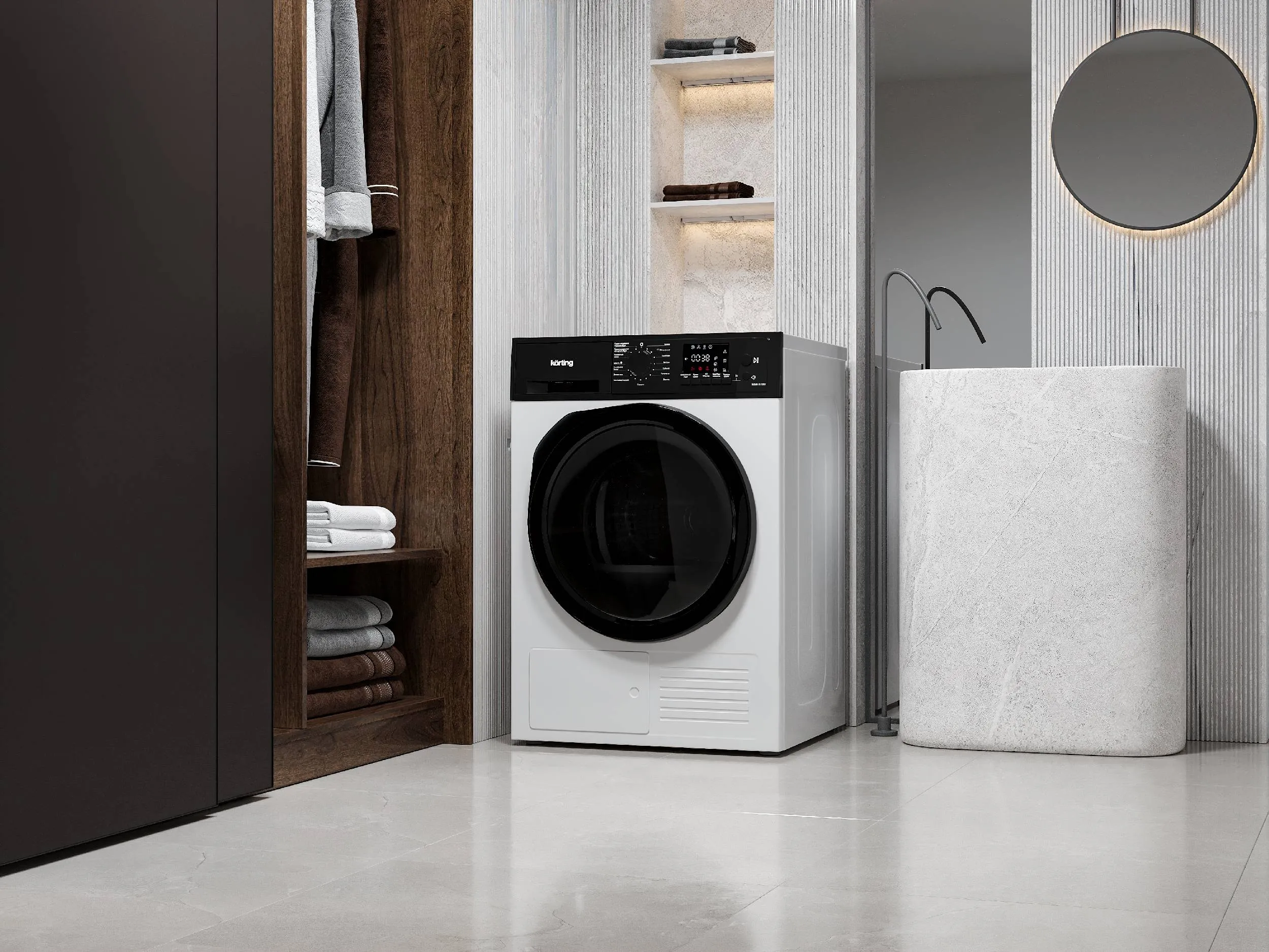 Сушильная машина Korting KD 69 IHP выполнена в белом цвете с черной панелью управления и люком. Технология «тепловой насос» позволяет деликатно сушить вещи, не потребляя при этом много электроэнергии. Освещение барабана обеспечит необходимый контроль над процессом. Благодаря отложенному старту возможно запланировать включение прибора на нужное вам время.