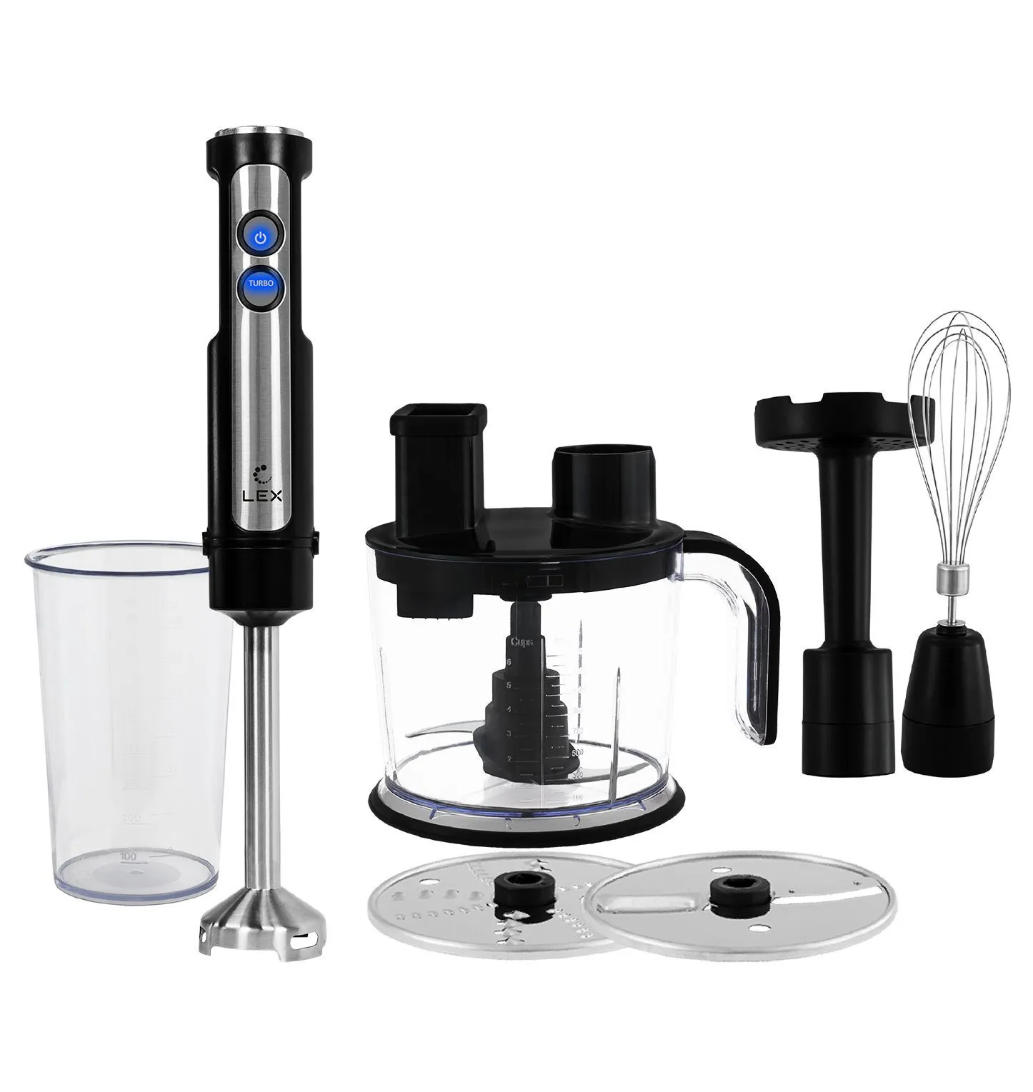 Комплектация погружного блендера включает: