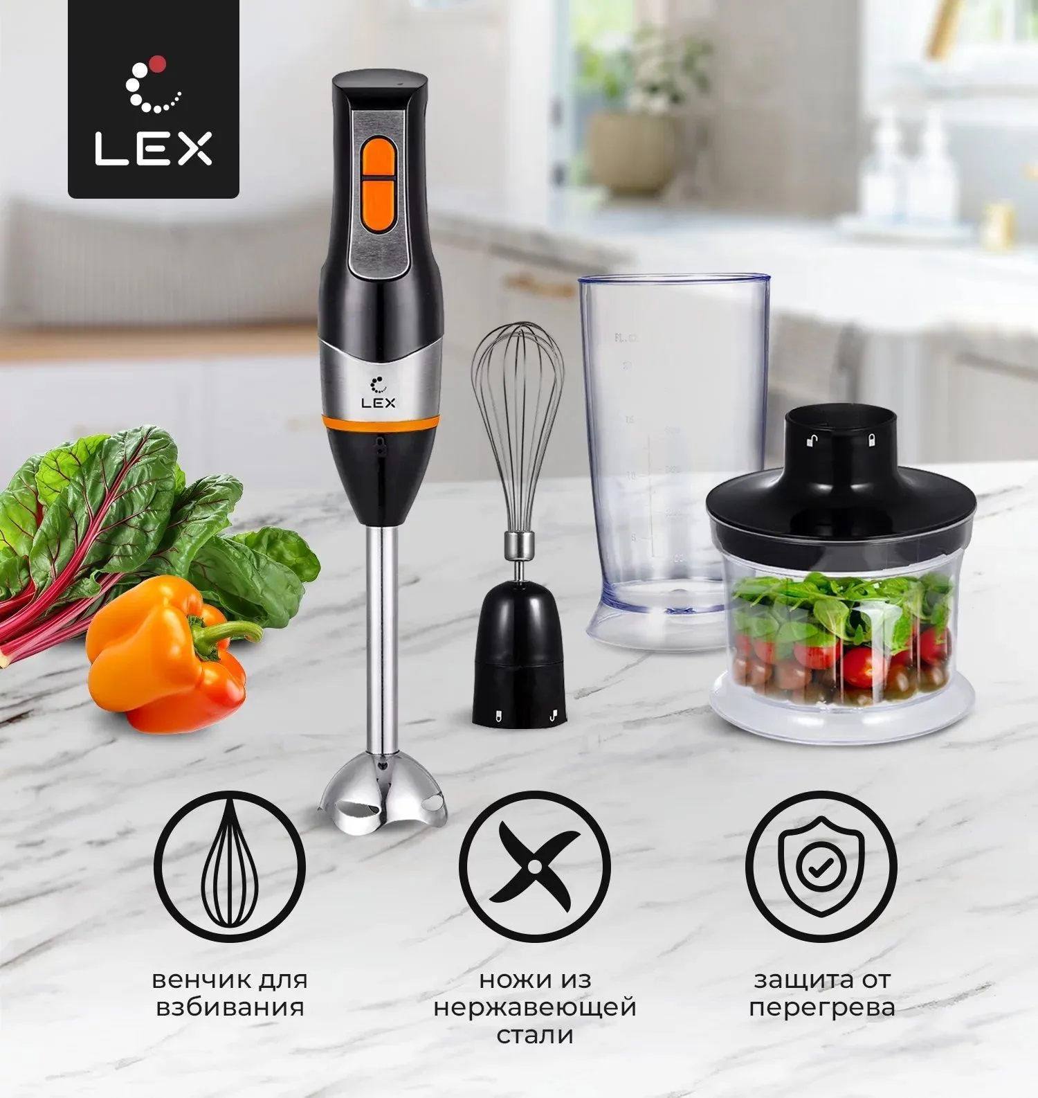 Блендер погружной LEX LX 10013-2 черный