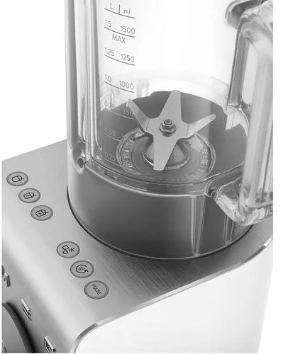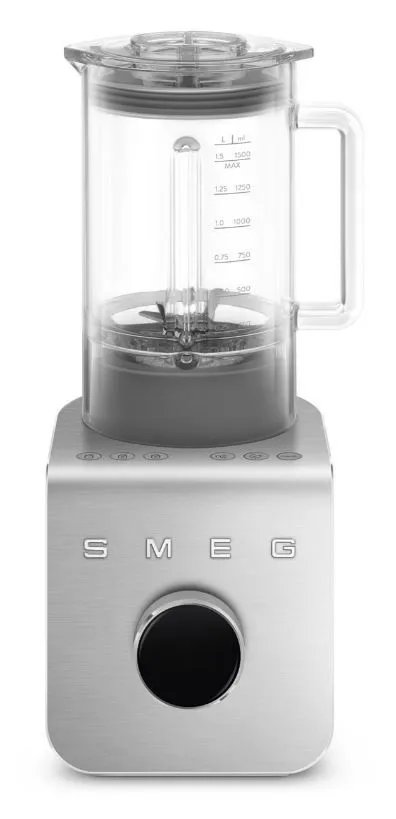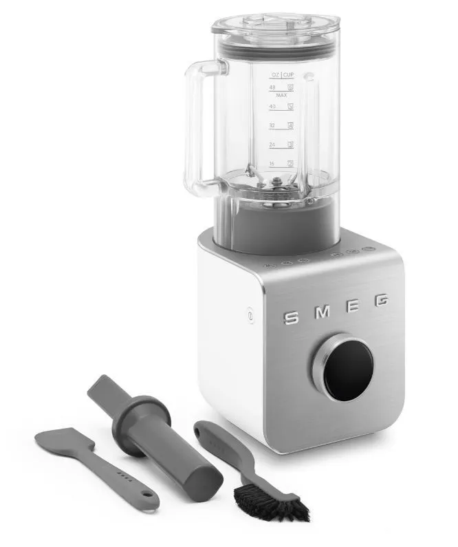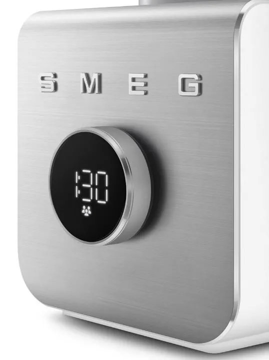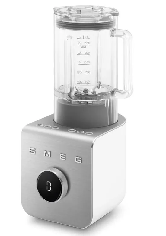 Блендер Smeg BLC01WHMEU имеет мотор мощностью 1400 Вт. Передняя часть корпуса выполнена из матового алюминия, на которой расположен селектор управления на 9 скоростей с дисплеем, отображающий выбранную скорость и обратный отсчет времени работы. Кроме того, на панели управления можно выбрать одну из автоматических функций и функцию «PULSE» для точного регулирования продолжительности и частоты смешивания. Каждый процесс смешивания гарантирует идеальный результат благодаря 5 специальным автоматическим программам