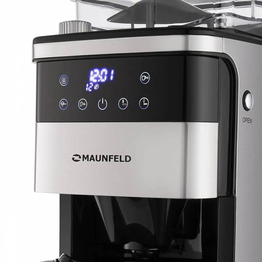 Многофункциональная кофемашина капельного типа MAUNFELD MF-723S последнего поколения со встроенной кофемолкой.