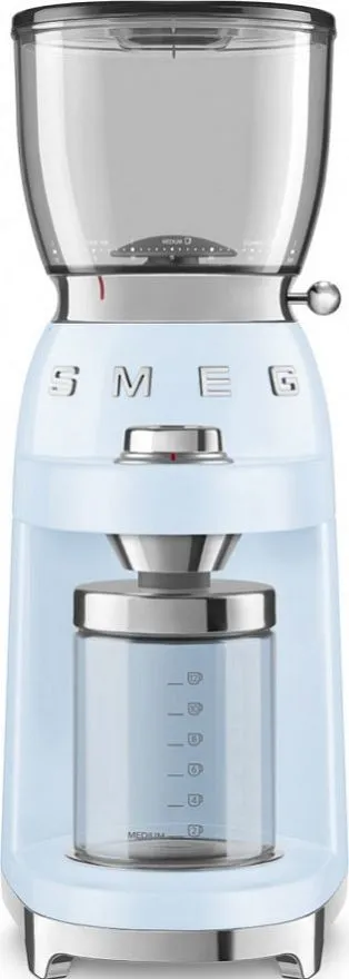 Кофемолка SMEG CGF11PBEU - это стильное и функциональное устройство, которое станет незаменимым помощником для любителей свежезаваренного кофе. Она выполнена в ретро-стиле 50-х годов, что придаёт ей особый шарм и делает уникальным элементом интерьера. Голубой цвет корпуса, выполненного из нержавеющей стали, подчеркивает элегантность и изысканность дизайна.