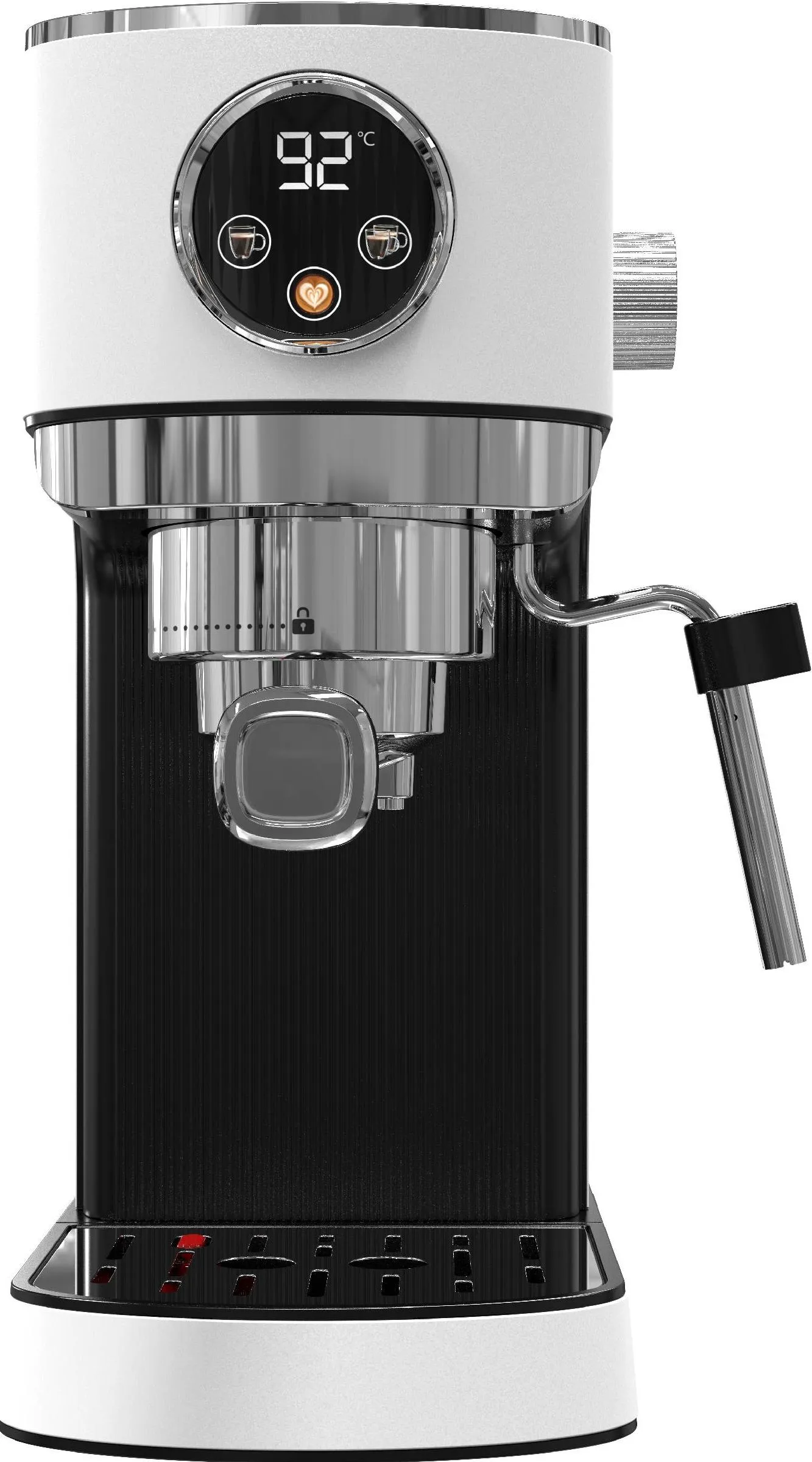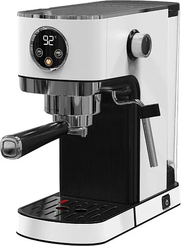 Управление устройством осуществляется с помощью сенсорного дисплея, что делает процесс использования устройства простым и удобным. Цифровой дисплей позволяет легко отслеживать процесс приготовления кофе и контролировать все настройки. Цвет устройства — белый, что делает его стильным дополнением к любому интерьеру кухни.