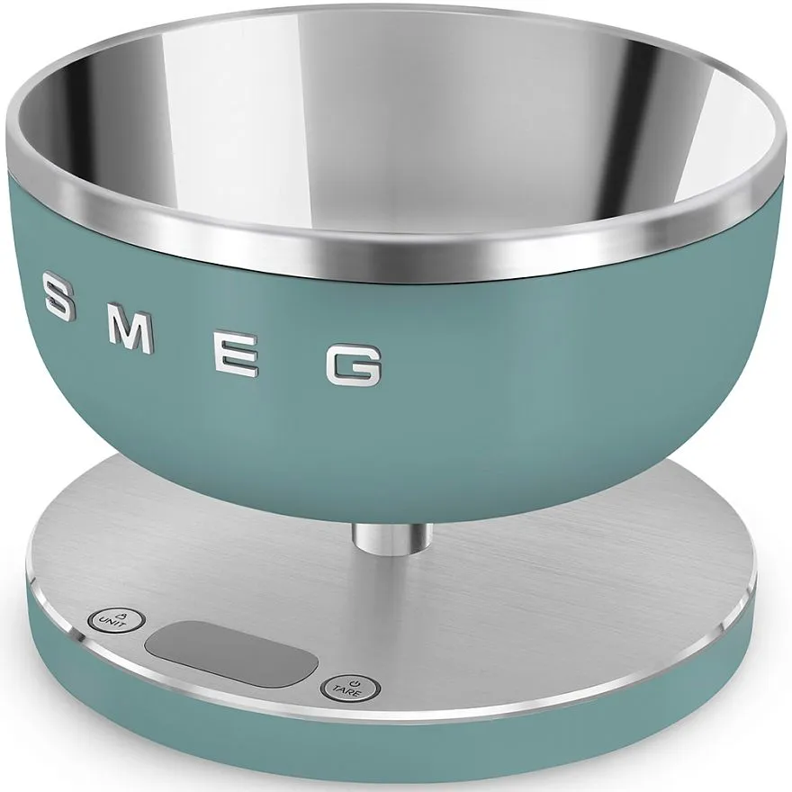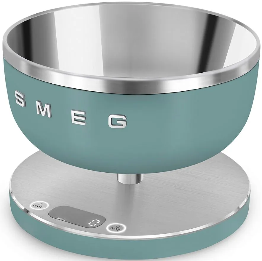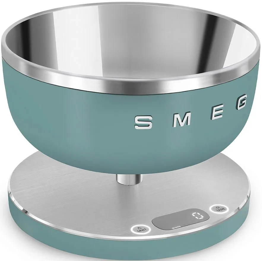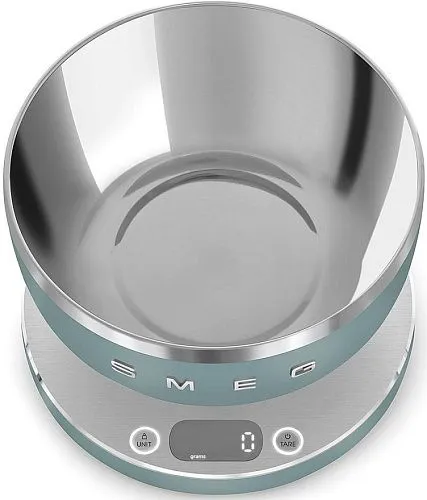 Кухонные весы Smeg KSC01EGMWW изумрудно-зеленого цвета — дизайн и комфорт. Эта модель отличается малым весом, благодаря корпусу из пластика. Объем чаши — 1,8 литра, что позволяет взвешивать большие порции продуктов. Максимальная вместимость — 5 кг, а шаг измерения — всего 1 г, что позволяет взвешивать продукты с высокой точностью.
