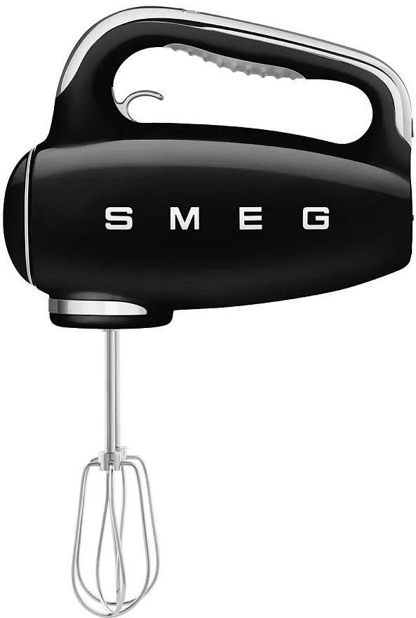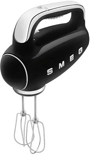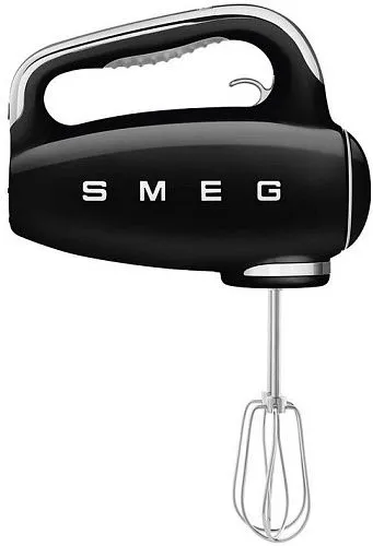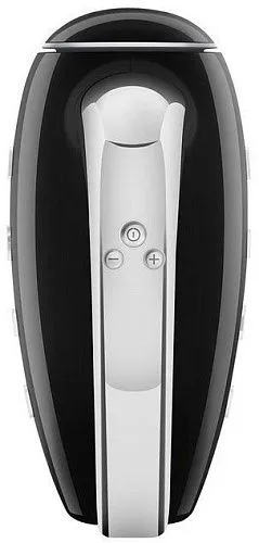 Ручной миксер Smeg HMF01BLEU выполнен в черном цвете и прекрасно дополнит крупную бытовую технику из линейки «Стиль 50-х годов». На LED-дисплее отображается таймер подсчета минут и секунд. При помощи удобного управления можно удобно регулировать скорости вращения, а также включить Турбо-режим.