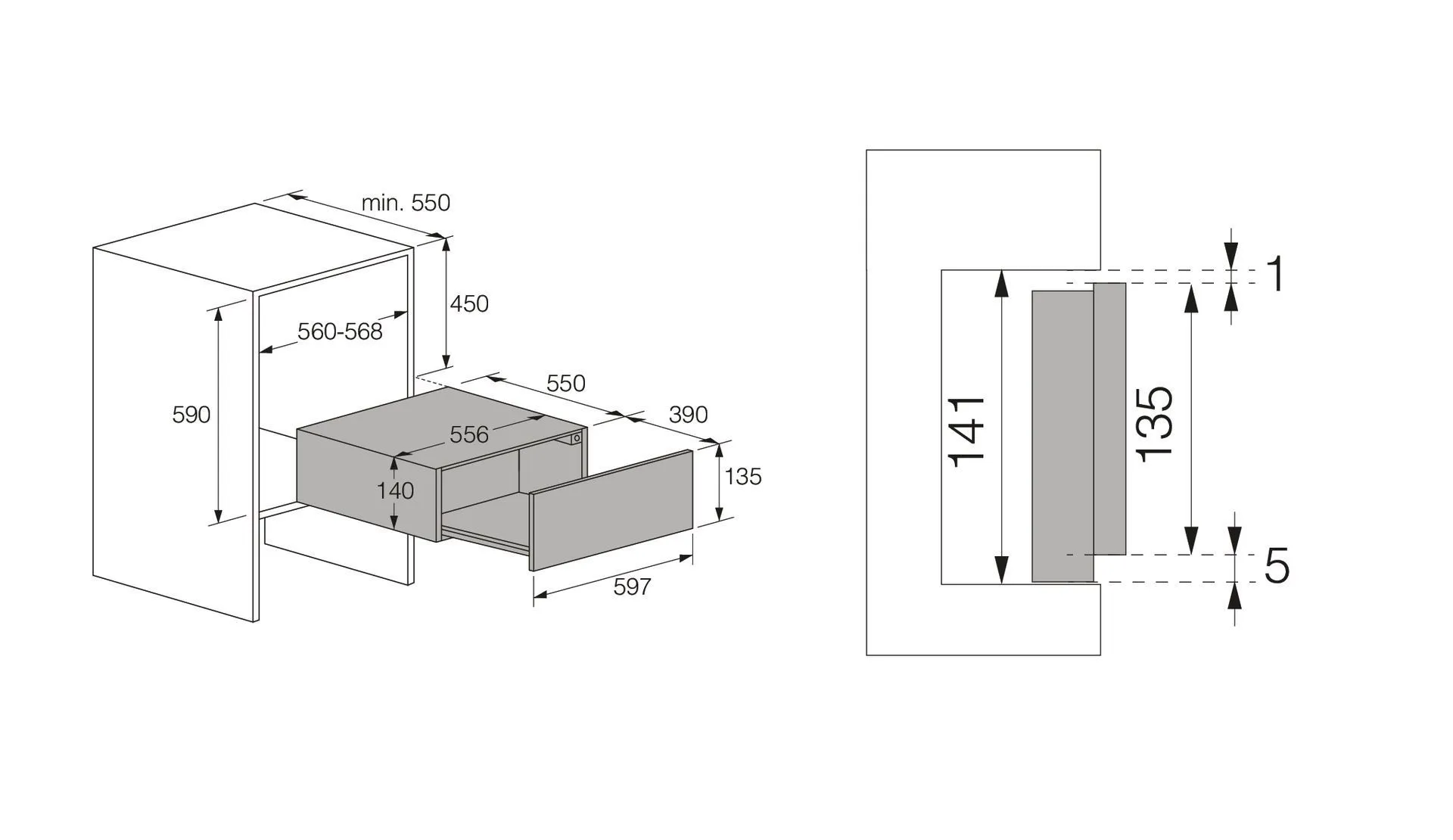 Встраиваемая в колонну модель выполнена в мягком черном цвете с жемчужным эффектом. Металлическая рамка предназначается для бесшовного монтажа. Камера изготовлена из нержавеющей стали и способна выдерживать большие перепады температур. Управление осуществляется при помощи сенсорных кнопок. Телескопические направляющие позволяют легко выдвинуть ящик. Объем вакуумной камеры достигает 8 литров, она рассчитана на запаивание пакетов размером максимум 250 на 350 мм. Устройство позволяет вакуумировать твердые и жидкие продукты. При перегреве предусмотрено защитное отключение.