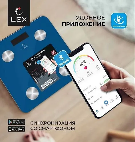 Умные напольные весы LEX серии LXBS способны не просто определять Ваш вес, но и процент воды и жира в организме, индекс массы тела, скорость обмена веществ, костную массу и другие биометрические параметры. При взвешивании прибор пропускает через тело неощутимый микроток. За счет этого измеряется более 17 основных биометрических показателей тела. Высокочувствительные датчики гарантируют точность. Динамика всех параметров хранится в приложении в вашем смартфоне, помогая поддерживать ваше тело в отличной форме. Приложение совместимо с iOS и Android. Для синхронизации со смартфоном реализована технология Bluetooth версия 4.0. Русифицированная инструкция позволит Вам осуществить настройку весов в считанные минуты. Встроенная память позволяет хранить измерения 8-ми пользователей. Большой LED-дисплей с индикацией показателей веса и температуры в сочетании с качественным высокопрочным стеклом толщиной 6мм, способны выдержать нагрузку до 180 кг. Автоматическое включение/выключение экономит заряд батареи. Прорезиненные ножки гарантируют устойчивое расположение. Широкая цветовая линейка данной серии весов позволит Вам без труда подобрать нужную модель под Ваш интерьер.