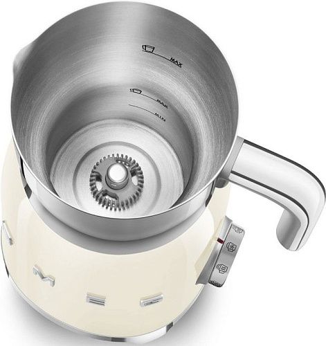 Вспениватель молока Smeg MFF11CREU выполнен в кремовом цвете. Кувшин из нержавеющей стали отличается повышенной прочностью и не подвержен коррозии. Режим взбивания молока с плотной пеной позволит достичь идеальной консистенции напитка. Нескользящие ножки обеспечат надежную фиксацию прибора во время работы, что гарантирует дополнительную безопасность.