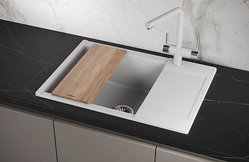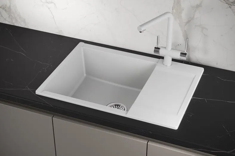 Эта кухонная мойка - настоящая новинка! Она изготовлена из высококачественного кварца, который известен своей прочностью и устойчивостью к царапинам. Благодаря этому материалу, ваша мойка сохранит свой первоначальный вид на долгие годы.