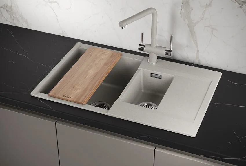 Представляем Granula Estetica - идеальную кухонную мойку для вашего дома! Эта двойная мойка оснащена двумя чашами различного размера, что обеспечивает максимальное удобство при выполнении различных задач на кухне. Корпус выполнен из прочного кварца с гарантией качества от производителя на 5 лет. Вы можете выбрать один из 7 доступных цветов, чтобы идеально вписать мойку в интерьер вашей кухни. Прямоугольная форма дополняет удобное крыло для хранения посуды или продуктов. В комплекте с мойкой идут деревянная разделочная доска и сифон с прямоугольным переливом для эффективного предотвращения протечек воды. Данная модель также совместима с измельчителями, что улучшает гигиену и облегчает процесс уборки на кухне. Не упустите возможность обновить вашу кухню с Granula Estetica!