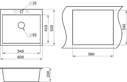 Форма мойки прямоугольная