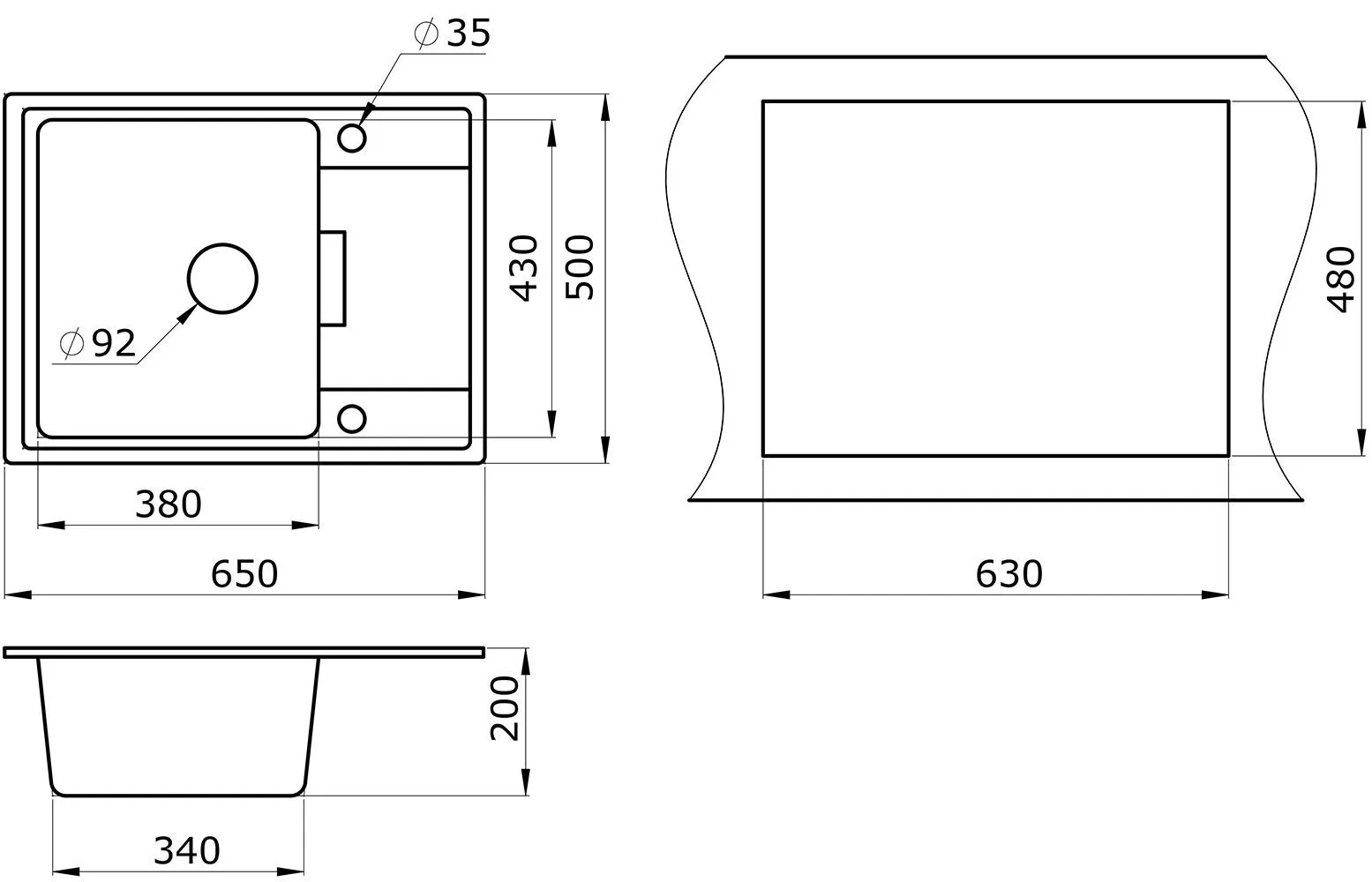 | Форма мойки | прямоугольная | |