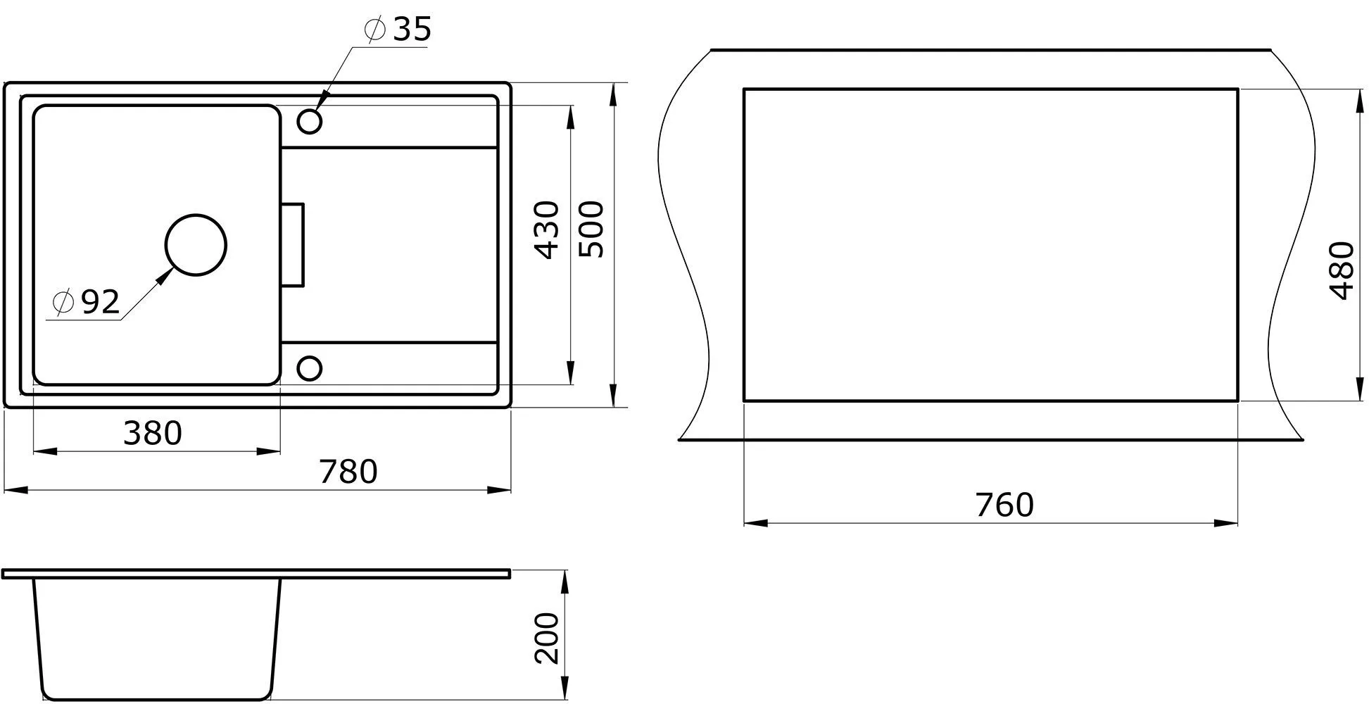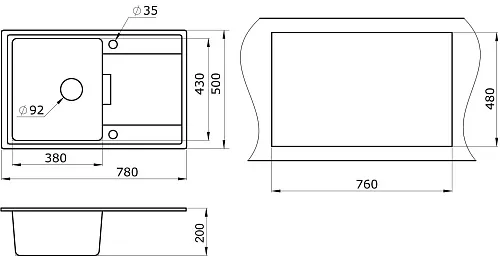 | Форма мойки | прямоугольная | |