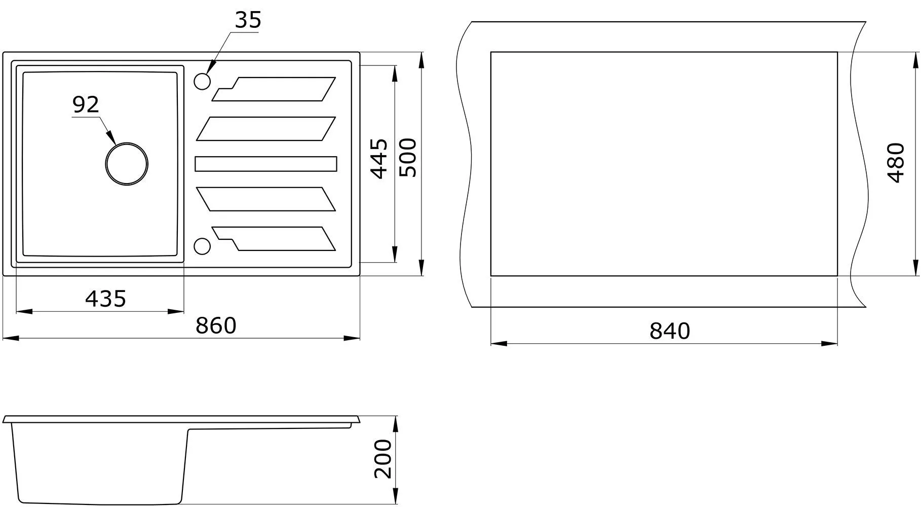 | Форма мойки | прямоугольная | |