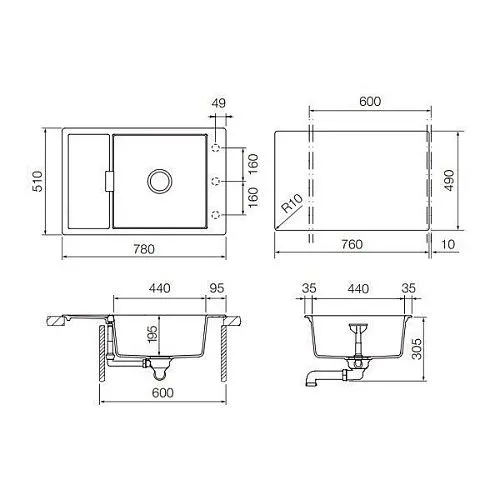 | Форма мойки | прямоугольная | |