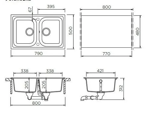 | Глубина чаши, мм | 205 | |
