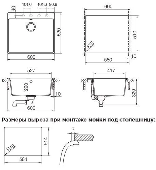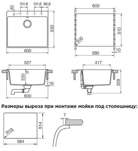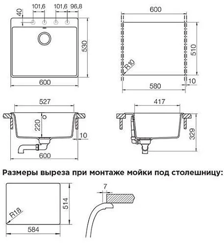 - Для установки мойки под столешницу необходимо дополнительно приобрести специальный крепеж, арт. 6.3016-8