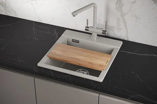 Эта кухонная мойка серии ESTETICA станет идеальным дополнением к вашей кухне благодаря оригинальному дизайну и 7 цветовым решениям. В комплекте с мойкой поставляется высококачественная деревянная разделочная доска из ясеня, которая не только стильно выглядит, но и обеспечивает комфорт при использовании.