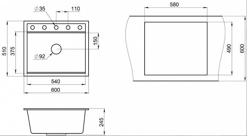 | Глубина чаши, мм | 245 | |