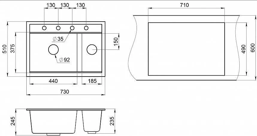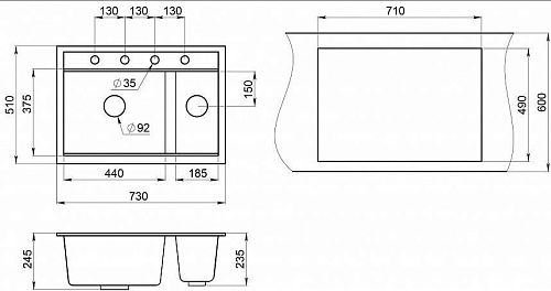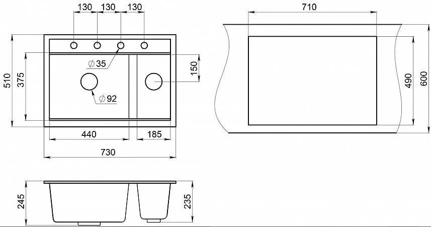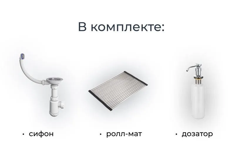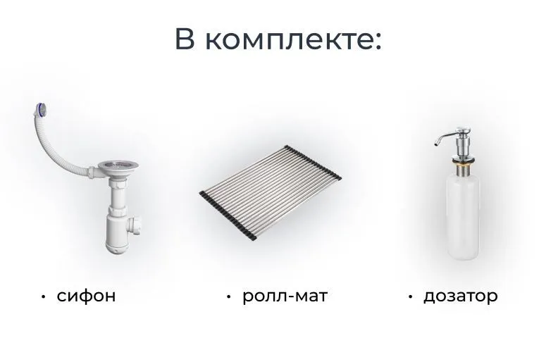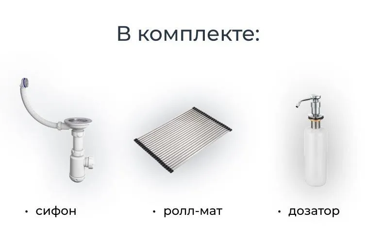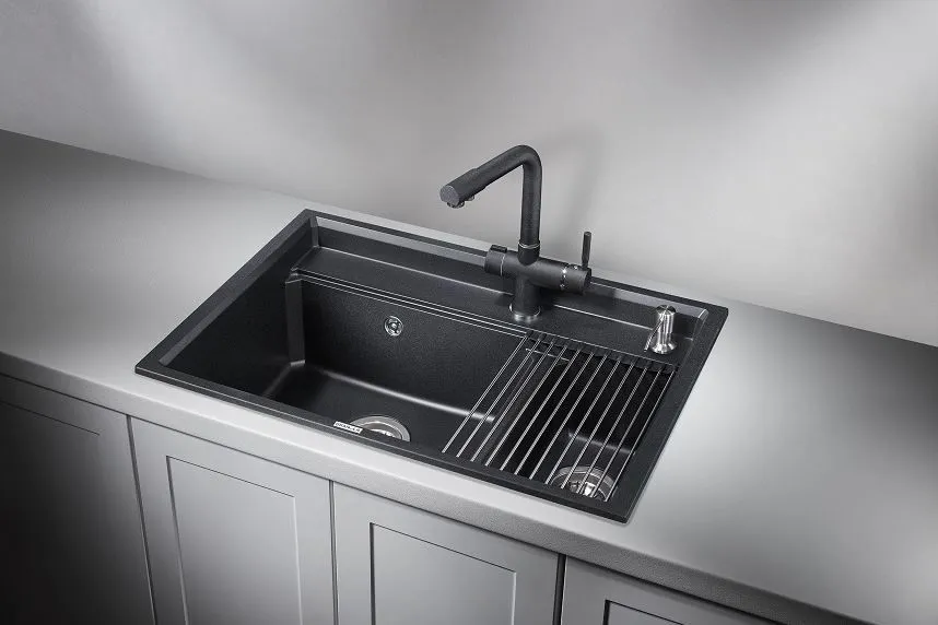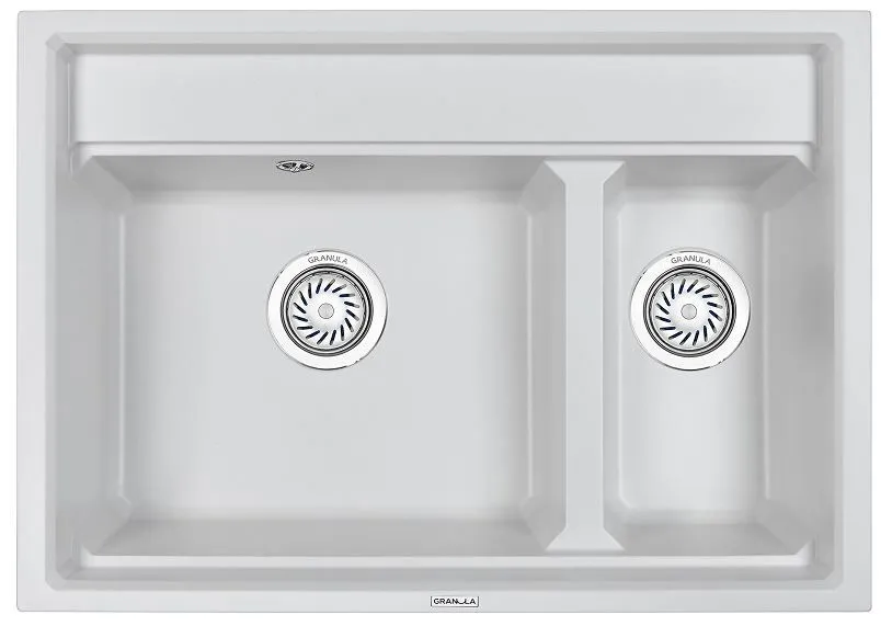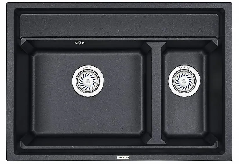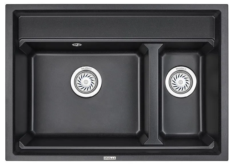 Мойка Granula с двумя чашами - идеальное решение для эффективной работы на кухне! Широкая чаша для мытья большой посуды, узкая чаша - для ополаскивания и мойки фруктов, овощей и мелкой посуды. Материал - кварцевый песок, прочный и износостойкий. Форма чаши адаптирована под функциональный ролл-мат. Мойка легко моется и устойчива к высоким температурам. В комплекте: ролл-мат, дозатор жидкого мыла, сифон.