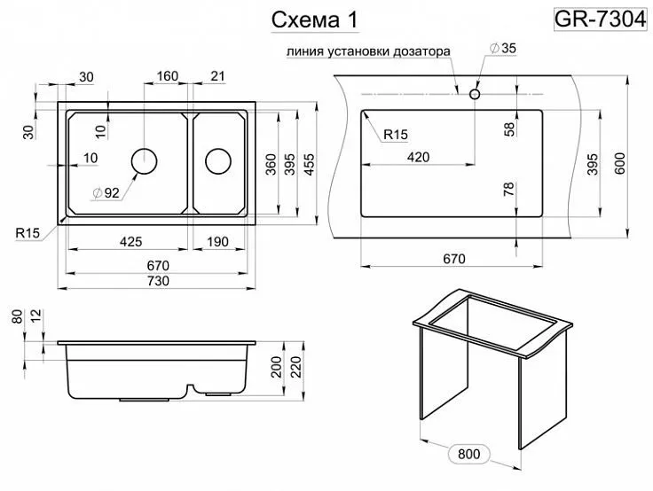 | Форма мойки | прямоугольная | |