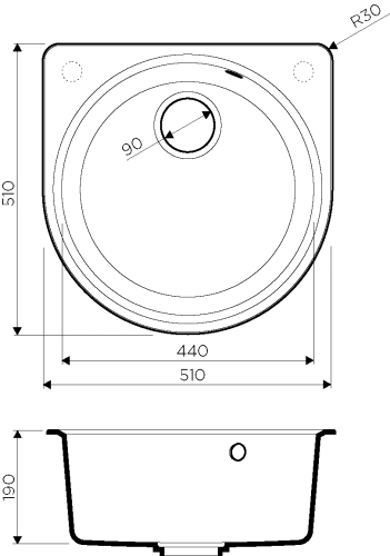 | Форма мойки | круглая | |