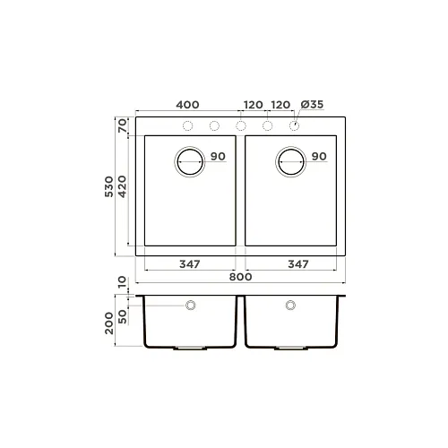 Обладает двумя удобными чашами, которые помогут вам разделить функционал на разные зоны. К примеру, в одной чаше можно установить измельчитель пищевых отходов и использовать чашу только для мытья посуды и измельчения отходов. Вторую чашу можно использовать только для мытья овощей/фруктов, набора воды или разморозки продуктов.