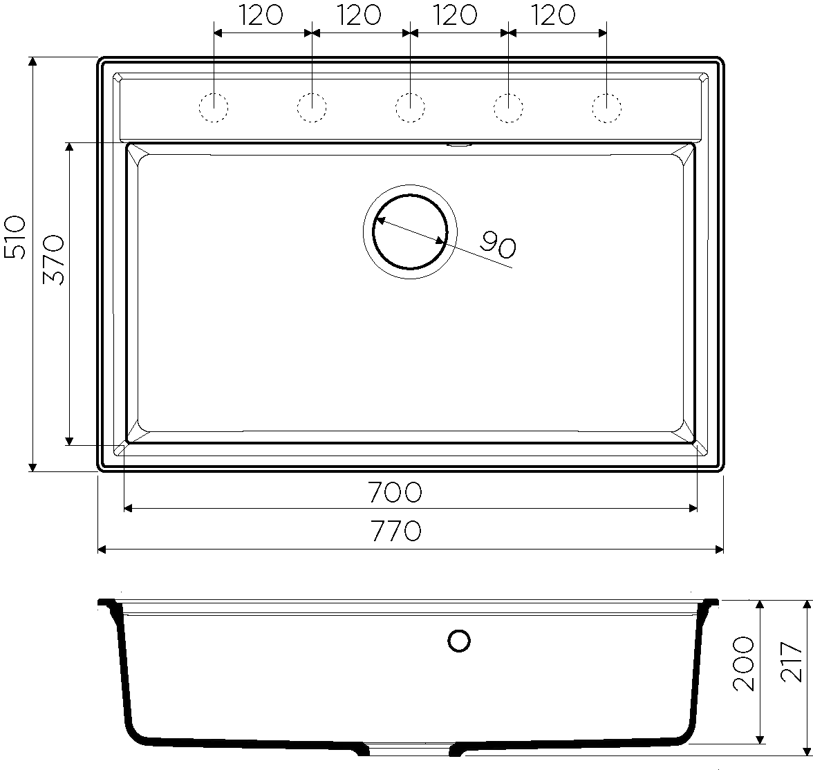 | Глубина чаши, мм | 217 | |